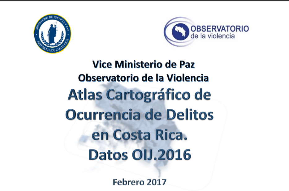 Atlas cartagráfico de delitos según los datos del OIJ 2016.
