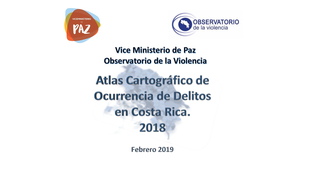 Quinto Atlas de incidencia de delitos por Provincia, Cantón y Distrito así como para el GAM. 2018