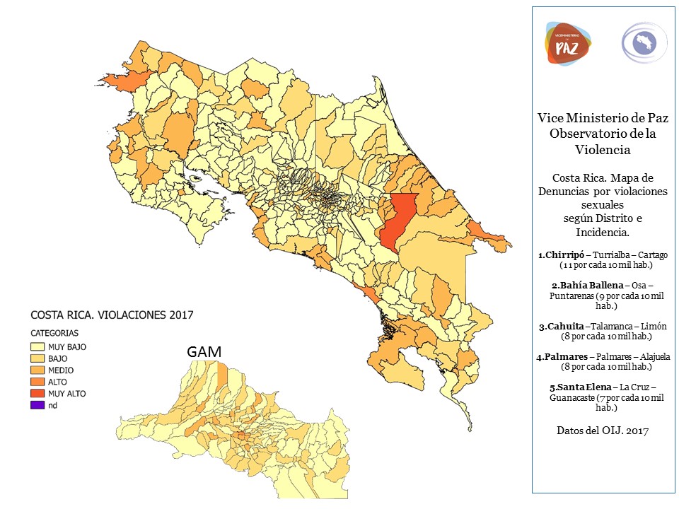 Mapa de denuncias por violaciones sexuales, según distrito e incidencia