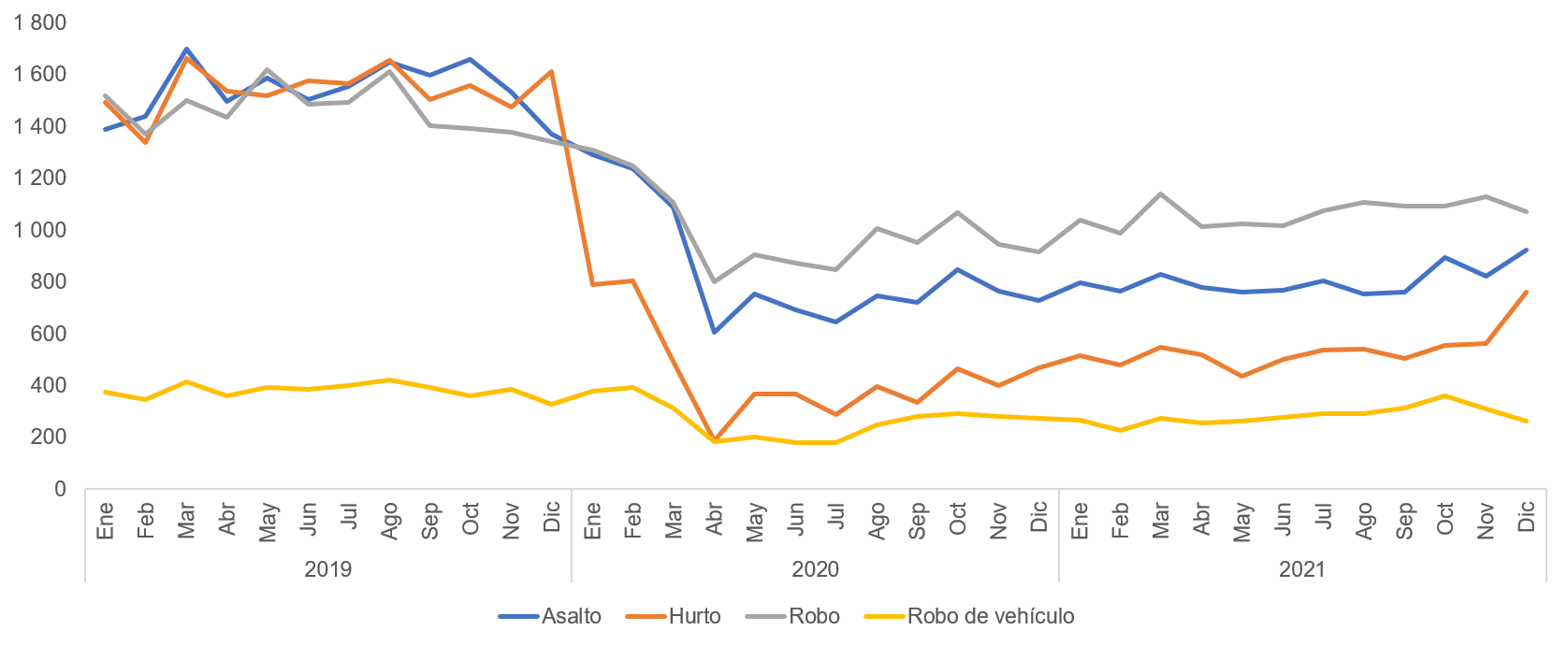 De las víctimas de delitos contra la propiedad en el 2021 son personas entre los 20 y 34 años34,8%